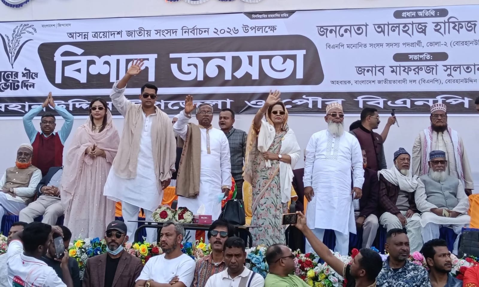 বোরহানউদ্দিন উপজেলা ও পৌর বিএনপি আয়োজিত নির্বাচনি জনসভায় উপজেলা বিএনপির সদস্য সচিব এডভোকেট কাজী আজমের সঞ্চালনায় সভাপতিত্ব করেন, উপজেলা বিএনপির আহ্বায়ক মাফরুজা সুলতানার। বিশেষ অতিথি হিসেবে বক্তব্য রাখেন ব্যারিষ্টার মারুফ ইব্রাহিম আকাশ, উপজেলা বিএনপির সিনিয়র যুগ্ম আহ্বায়ক সরোয়ার আলম খান, পৌর বিএনপির সাধারণ সম্পাদক মনিরুজ্জামান কবির মিয়া, উপজেলা যুবদলের আহ্বায়ক শিহাব হাওলাদার, সদস্য সচিব জসিমউদদীন খান, উপজেলা সেচ্ছাসেবকদলের সভাপতি লিটন শিকদার, সাধারন সম্পাদক আতিক আসলাম রুবেল প্রমুখ।